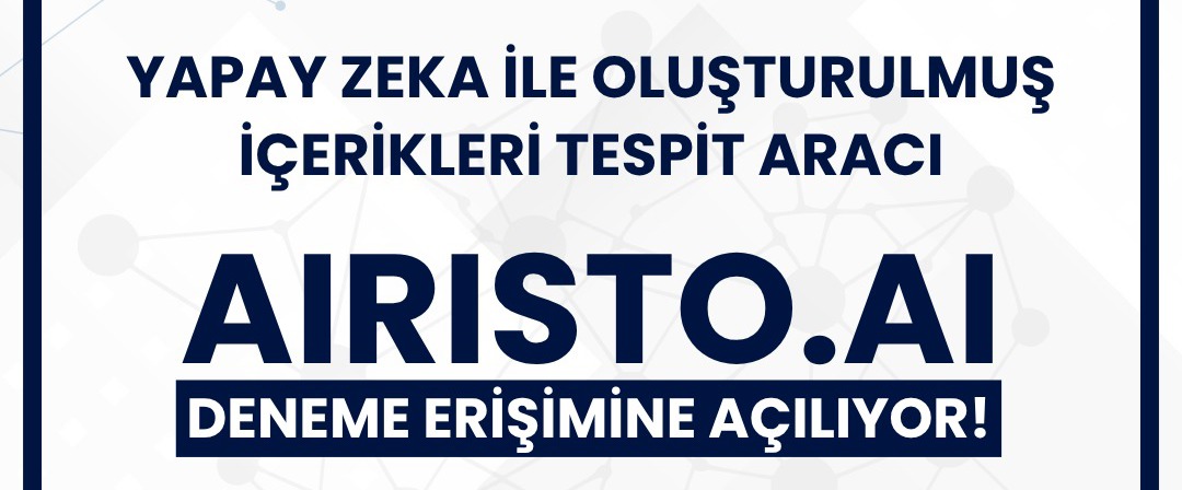 Airisto yapay zeka tespit aracı 7 Aralık 2025 tarihine kadar deneme erişime açılmıştır.